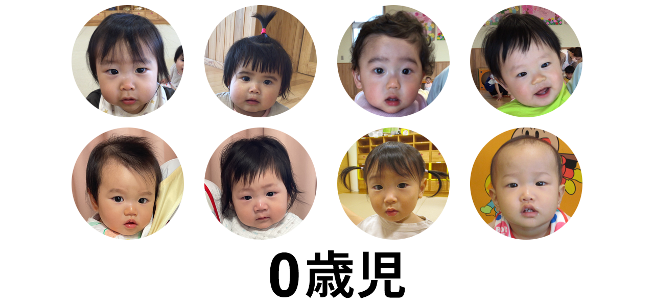 男の子4名・女の子4名の0歳児と、男の子7名・女の子14名の1歳児、全員で29名のたまご組です。