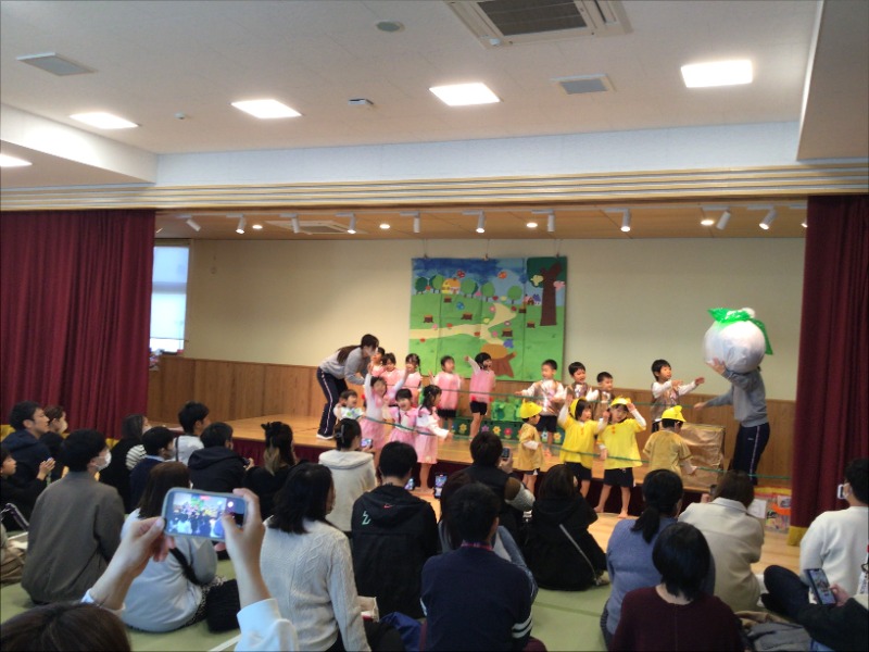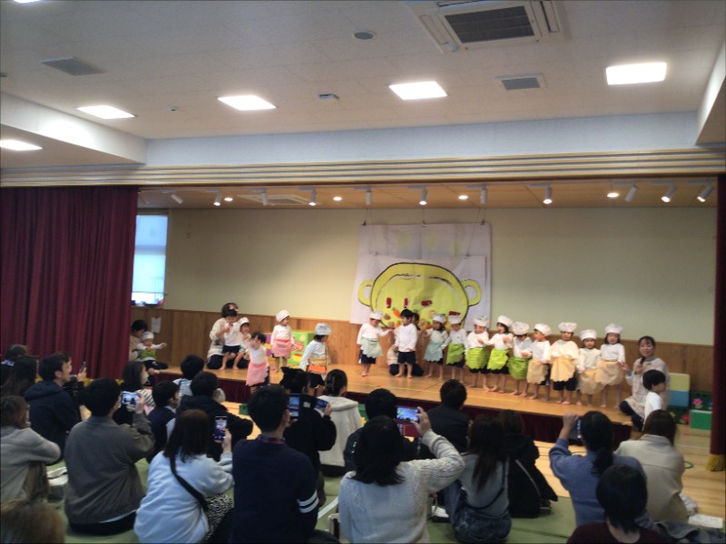 発表を見て、一年の成長の大きさを改めて感じることができました。子ども達は大好きなお家の方に見てもらい、頑張りを認め褒められ一人一人の自信につながり大きな力となりました。発表会後も役を交代して「発表会ごっこ」を楽しんでいます。これからの成長も楽しみです。